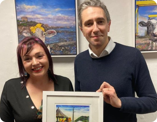 Even our Taoiseach, Simon Harris, owns a piece — a 🐄 Moo Selfie on Bray Prom